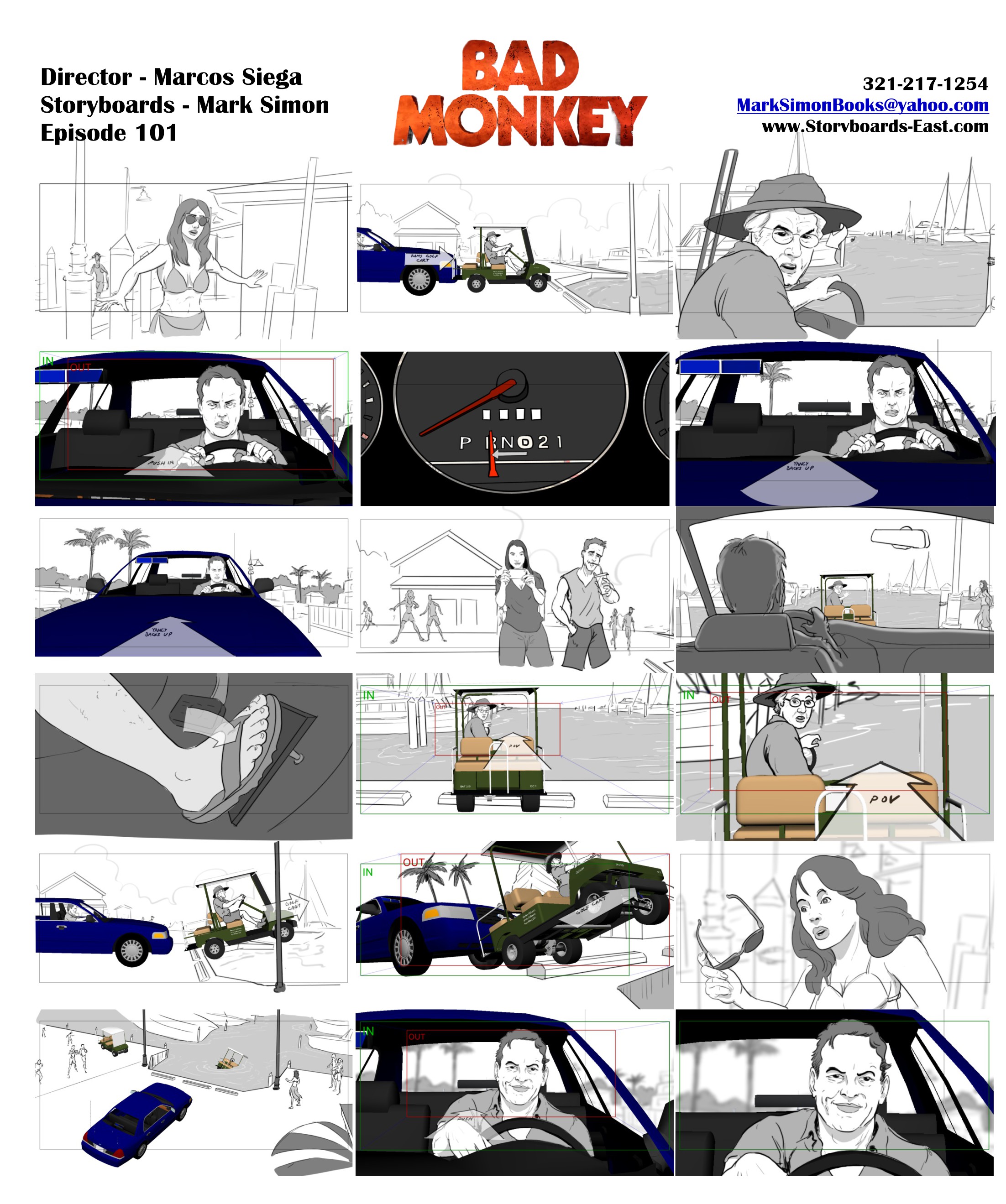 Apple TV+'s hit series Bad Monkey was storyboarded completely virtually. Mark Simon boarded the entire season and he spent a few extra minutes to capture the actors so the boards will be even more inspirational for the cast and crew.